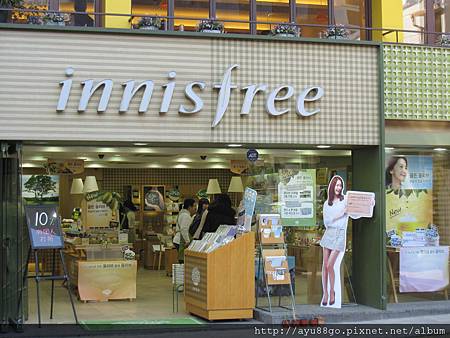 雖然門口寫著10%外國人優惠,而且還是最當紅的少女時代潤兒帶言的,但因為用習慣日本的保養品了,所以看看就好^^ (innisfree,台灣還沒設櫃)