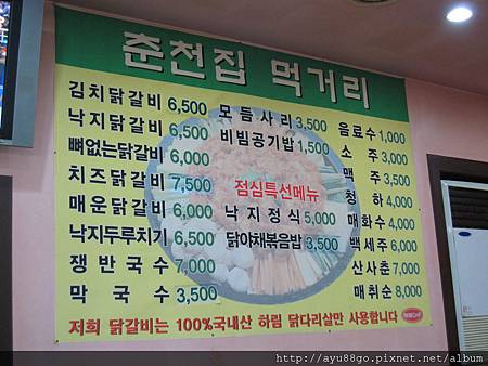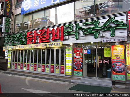 時間是下午4:16,地點是名店春川辣炒雞排店門口,現在吃晚餐會不會早了點?!咳~~外國人臉皮就是比較厚嘛,有調查過韓國大部份餐廳是沒有午休的,所以即使店內空無一人,還是可以放心的走進來