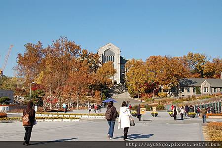 1886年成立的梨花女子大學是韓國排名第一的女子大學,許多達官顯要的夫人皆畢業於此,梨大後門一帶聚集了許多服裝店、藥妝店、髮型沙龍、咖啡蛋糕店等吸引女性族群的商店,因此有"梨大女人街"之稱,據說藥妝比明洞便宜,可能是因為主要消費族群是"學生"的緣故吧,但因為Ayu並沒有採買韓國藥妝,因此並不清楚行情